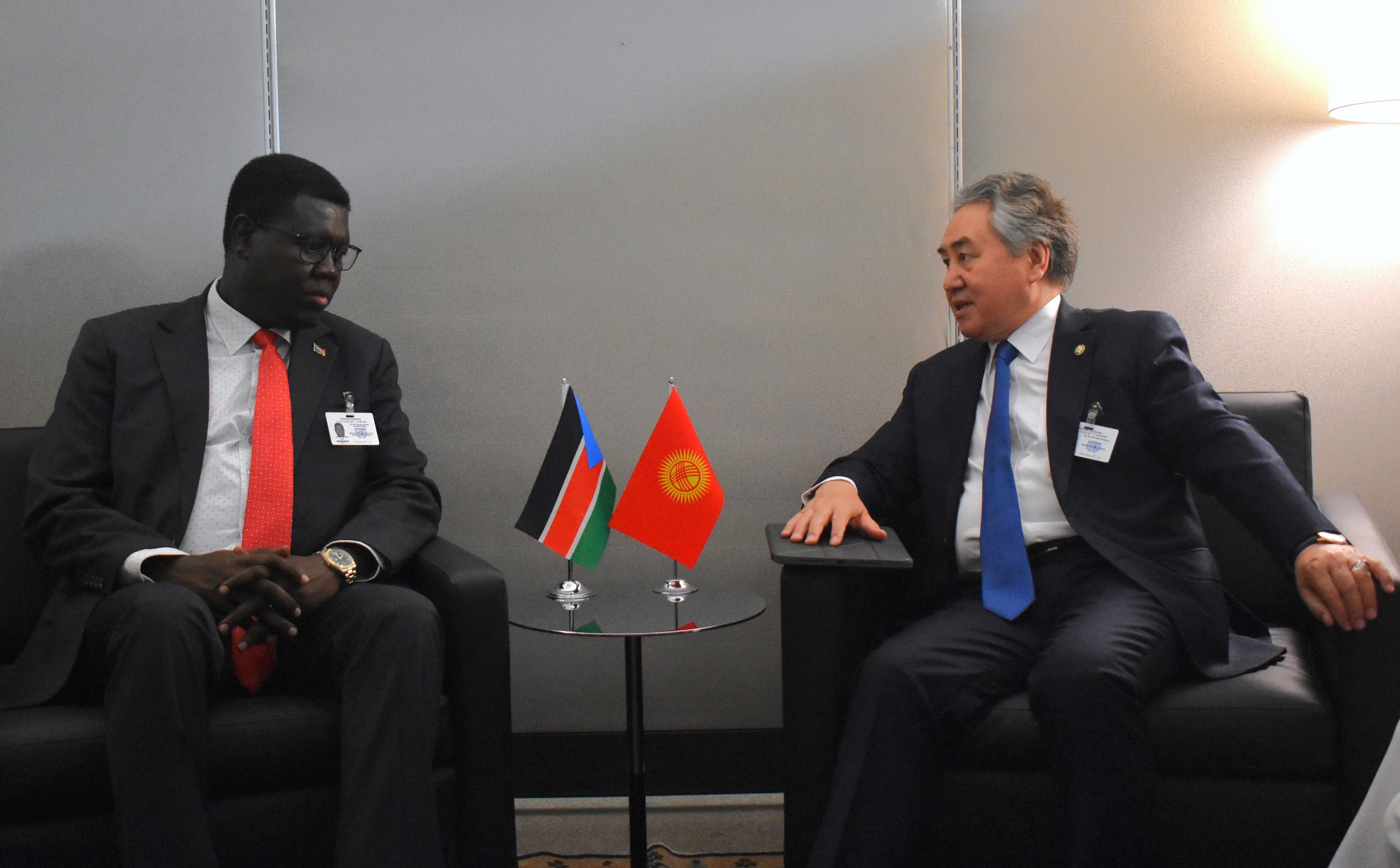 2025-жылдын 25-сентябрында Нью-Йорк шаарында Кыргыз Республикасынын тышкы иштер министри Жээнбек Кулубаев Түштүк Судан Республикасынын тышкы иштер ведомствосунун башчысы Мондэй Семайя Кумба менен жолугушуу өткөрдү.