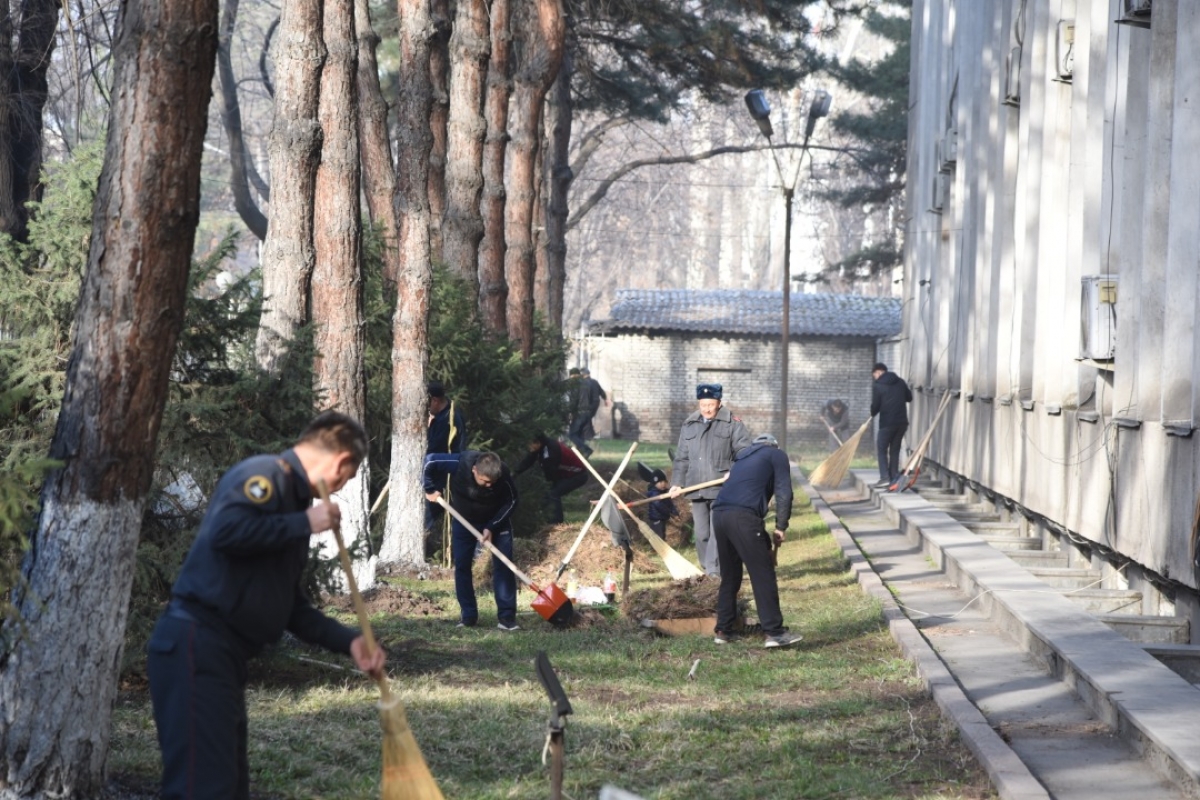 14-март күнү Кыргыз Республикасынын ИИМдин Борбордук аппаратынын өздүк курамы тескеме өтүлгөн соң, административдик имараттын жанындагы аймактарды жана министрликтин ички короосун көрктөндүрүү жана жашылдандырууга өтүшүп, бир нече сааттын ичинде кышында топтолгон таштандыларды тазалашып, ирээтке келтиришти. Бул тууралалуу ИИМдин басма сөз кызматы билдирди.