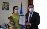 Бактыгүл Бадыева, Анжелика Кайратова жана ыктыярчылар акимден сыйлык алышты