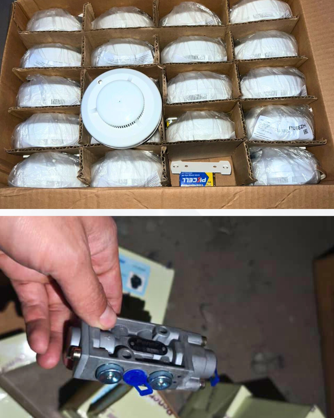 Также с подозрением на наличие неучтённого товара была осмотрена грузовая автомашина Volvo. При проверке выявлены товары без соответствующих сопроводительных документов — сетевые кабели, датчики для пожарной системы, моторные масла без акцизных марок, жидкости для снятия лака, игрушки и другие наименования. Общая сумма выявленного товара составила 2,5 млн сомов.