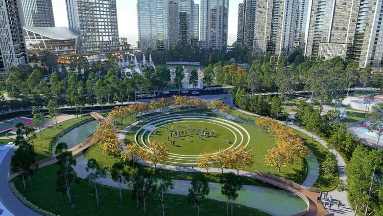 Согласно проекту планируется строительство многоэтажных жилых квартир, школы, больницы, торговых центров. Важную часть в проекте занимает зеленая зона. Вся зеленая зона будет размещаться в самом центре проекта. По проекту планируется строительство озера, танцующие фонтаны.