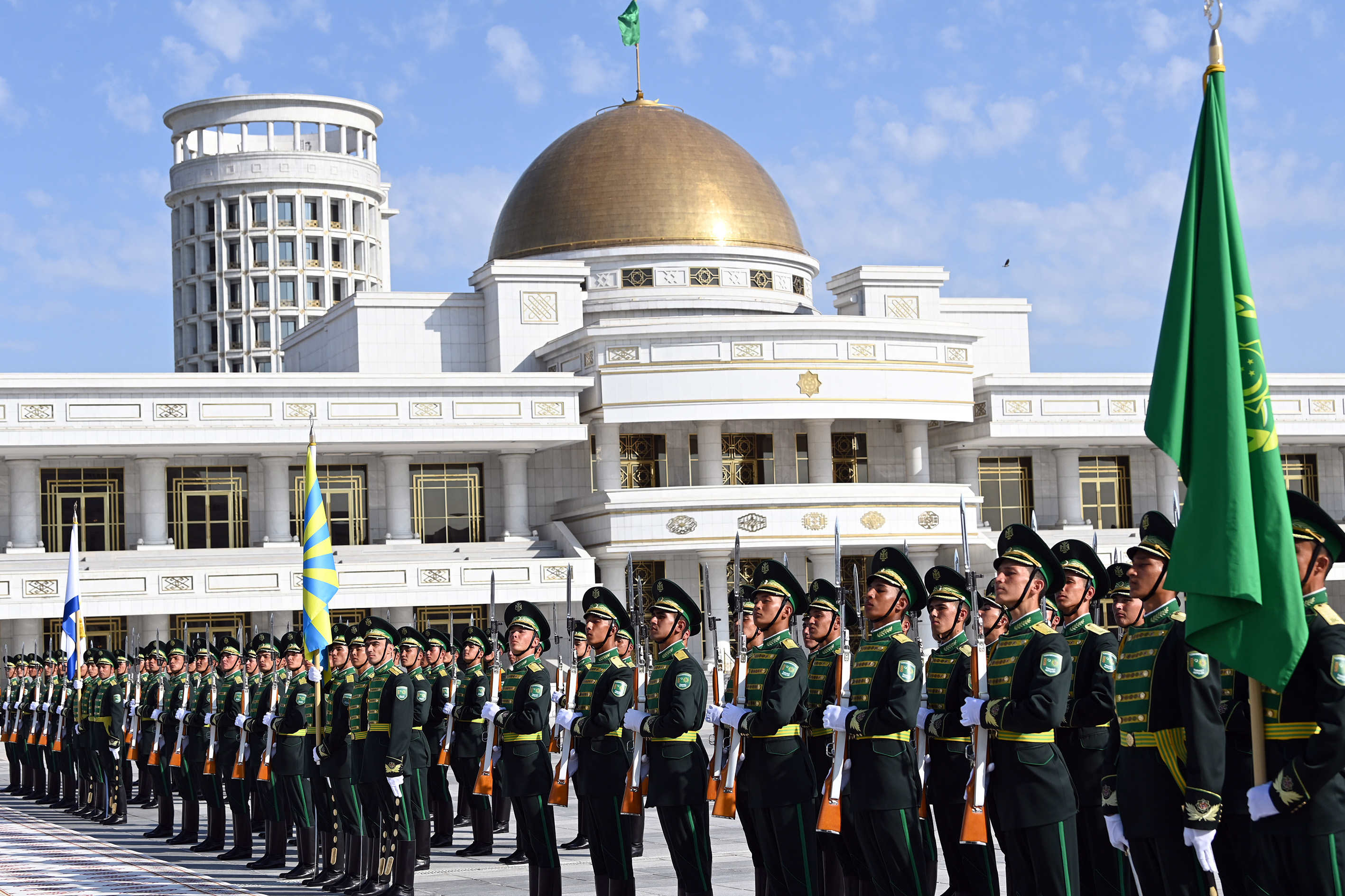 Кортеж с Жапаровым подъехал на Площадь независимости Ашхабада, где его встретил Бердымухамедов.