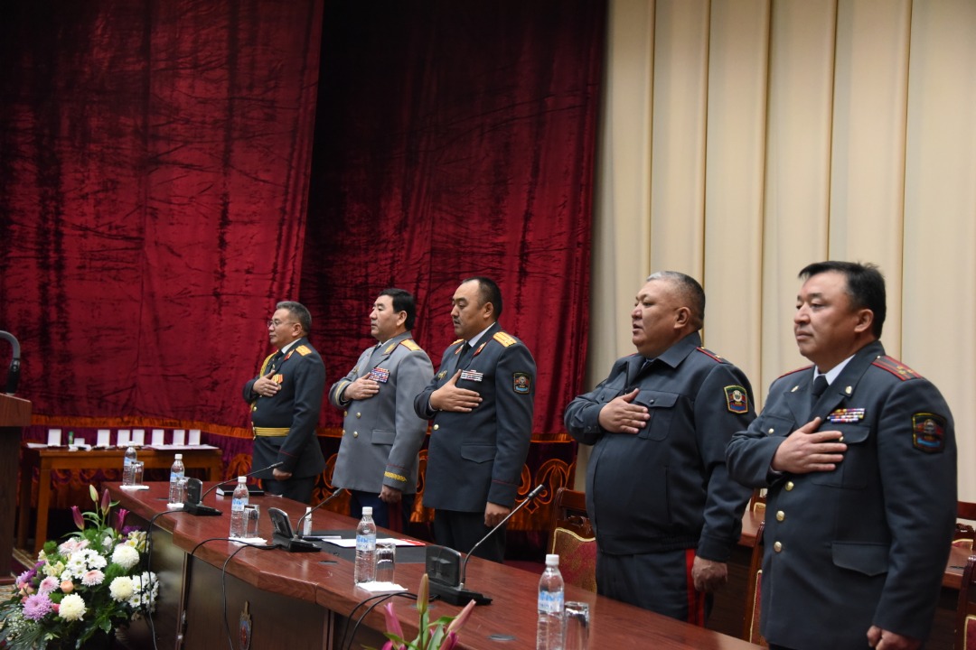 Также с поздравительной речью выступил председатель совета ветеранов МВД КР Султанбек Жоошбаев.