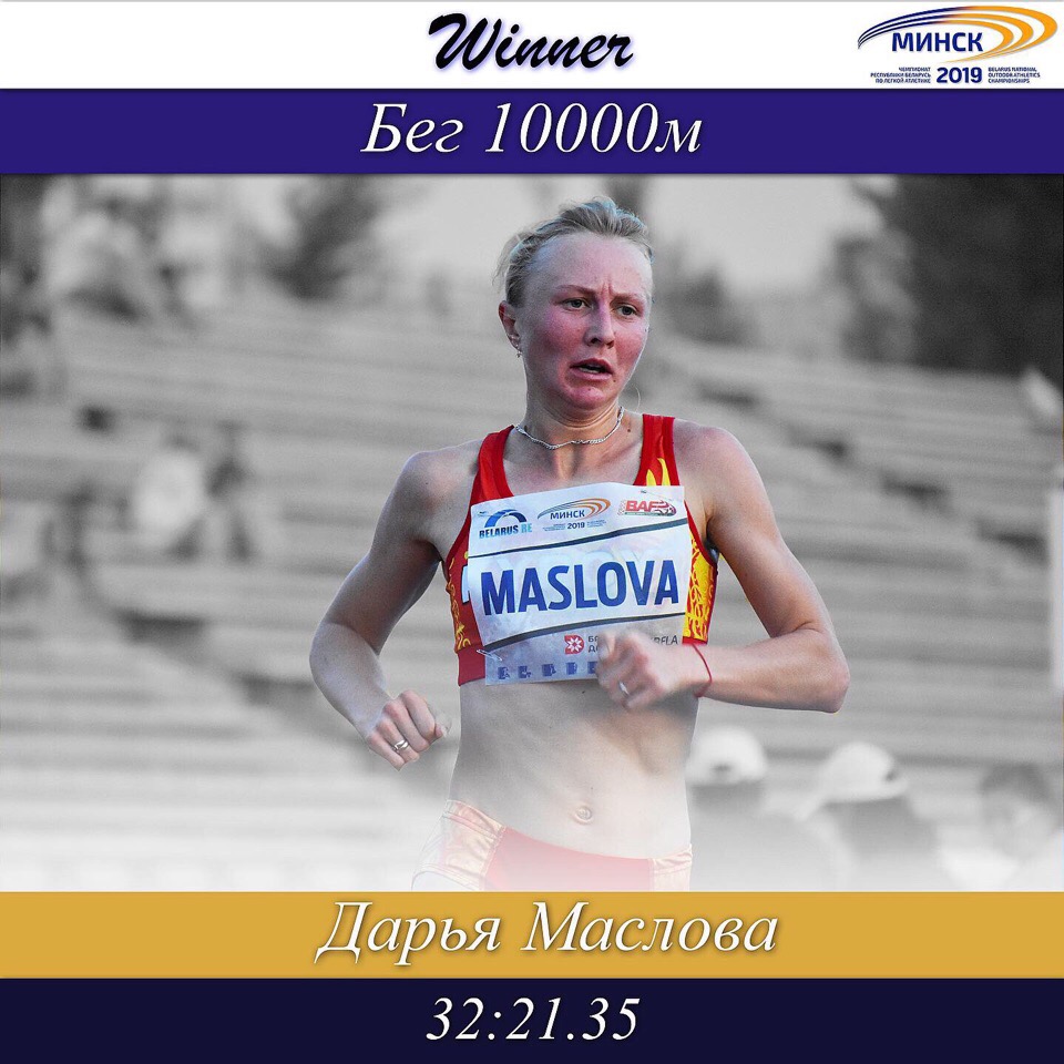 Как сообщает Федерация легкой атлетики Беларуси, в беге на 10 км Маслова преодолела дистанцию за 32 минуты 21.35 секунды. Этот результат позволил ей завоевать золото турнира.