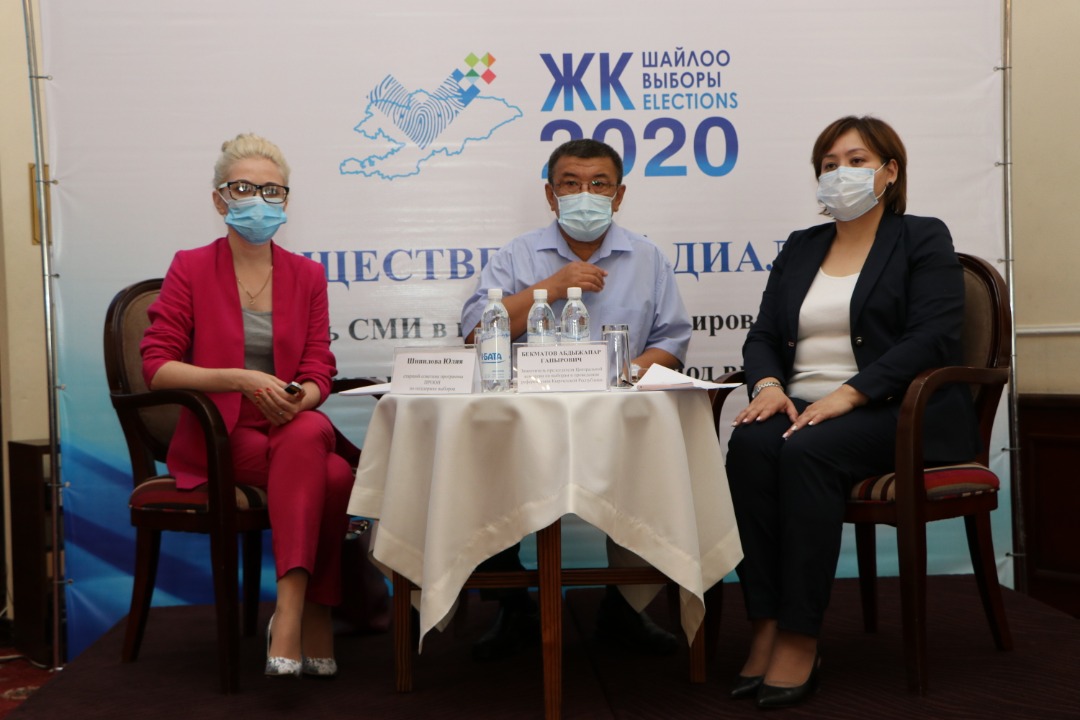В ходе выступлений спикеры рассказали участникам диалога о роли СМИ в достоверном освещении выборов депутатов Жогорку Кенеша Кыргызской Республики, финансировании избирательной кампании, о прозрачности финансирования избирательных фондов политических партий и предоставили подробную информацию о порядке формирования и расходования денежных средств избирательных фондов при проведении выборов депутатов ЖК КР.