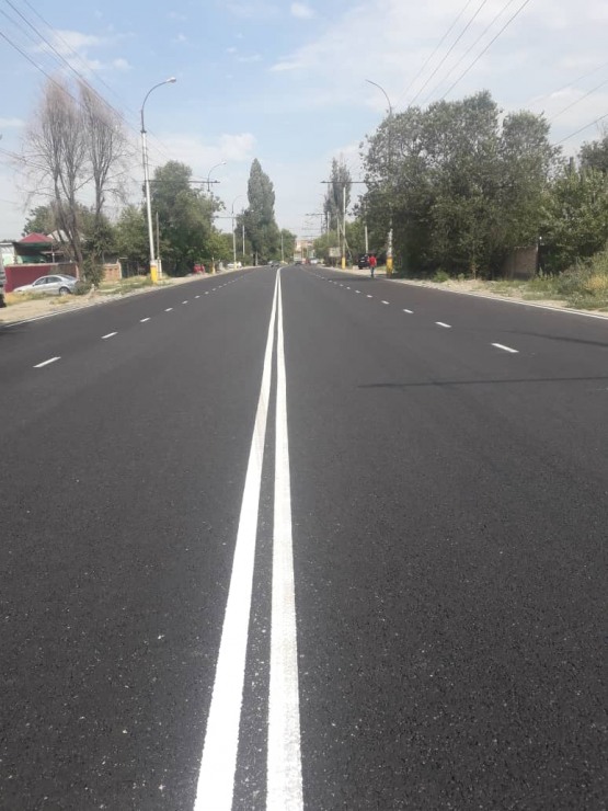 В течение нескольких месяцев здесь шли дорожные работы в рамках проекта «Восстановление дорожного покрытия автомобильных дорог города Бишкека», было заменено дорожное полотно, установлены новые дорожные бордюры.