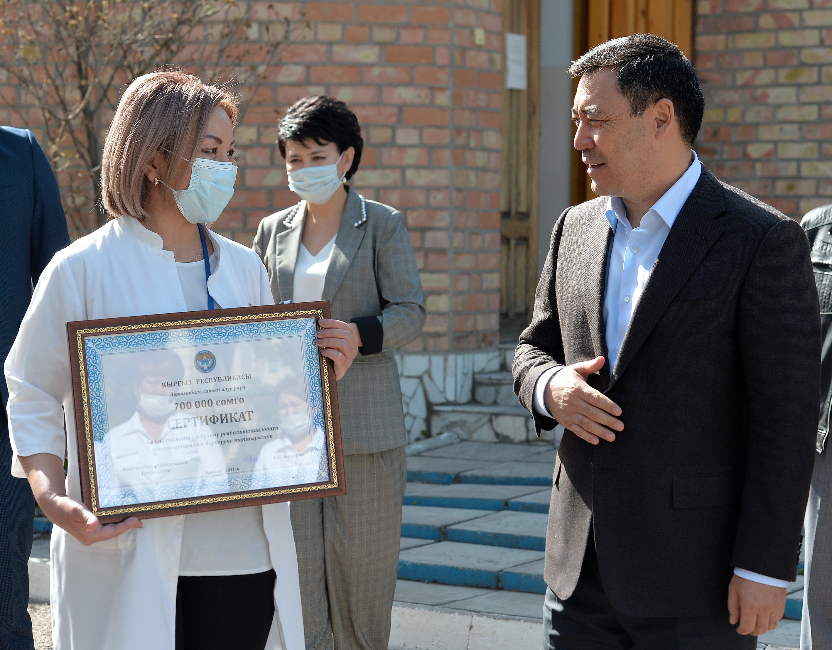 Подытоживая встречу, Жапаров вручил директору учреждения сертификат на 700 тыс. сомов в целях приобретения автомашины для перевозки детей.