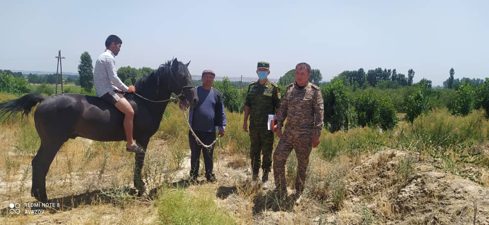 27 июня 2021 года к пограничникам Ала-Букинского пограничного отряда обратился житель села Жаны-Шаар Ала-Букинского района Джалал-Абадской области с просьбой помочь вернуть лошадь, которая перешла на территорию сопредельного государства.