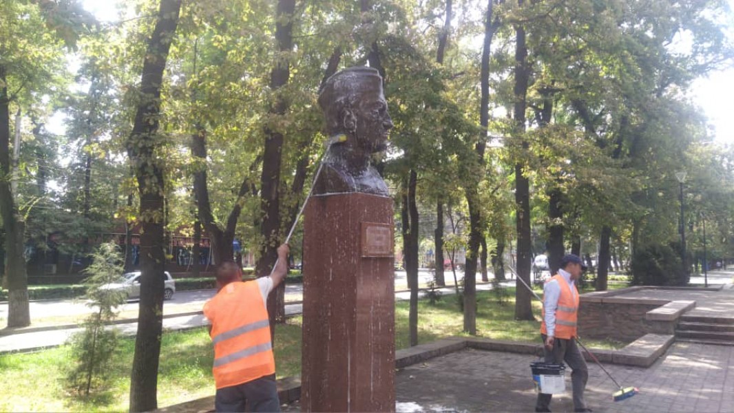 В Бишкеке моют памятники