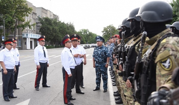 На Старой площади в Бишкеке 8 июня 2019 года состоялся гарнизонный развод милицейских нарядов и сотрудников органов внутренних дел, заступающих на охрану общественного порядка.