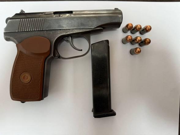 При личном досмотре у подозреваемого был обнаружен и изъят пистолет марки «Макарова» со стёртыми номерами, с семью патронами.
