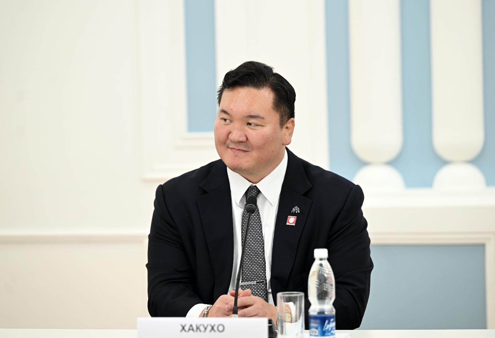 Хакухо Сё поблагодарил за теплый прием и рассказал о своем жизненном пути, успехах в спорте.