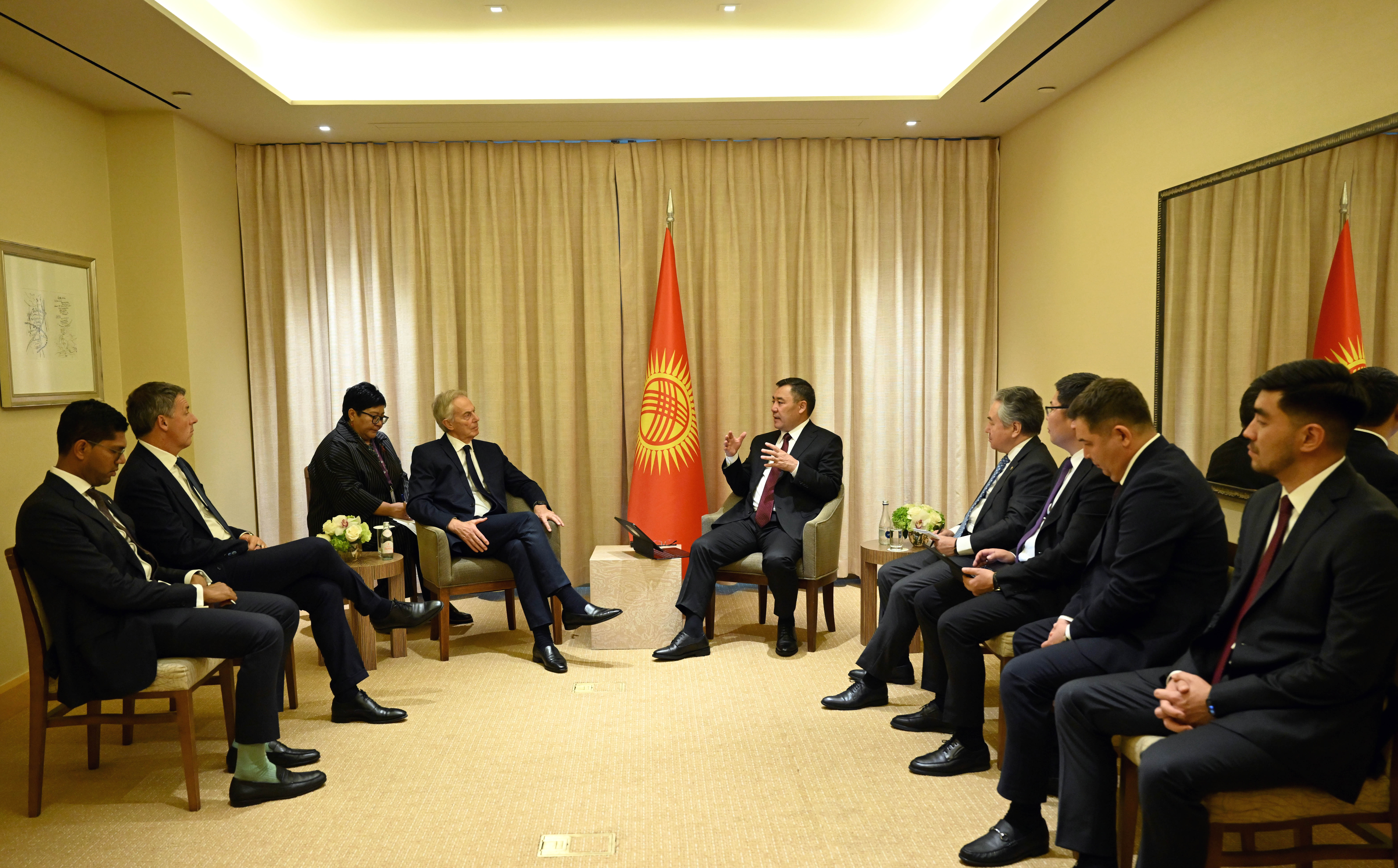 Президент Кыргызской Республики Садыр Жапаров провел встречу с бывшим премьер-министром Великобритании, ныне исполнительным председателем Института глобальных изменений, Тони Блэром в Нью-Йорке. Об этом сообщает пресс-служба президента КР.