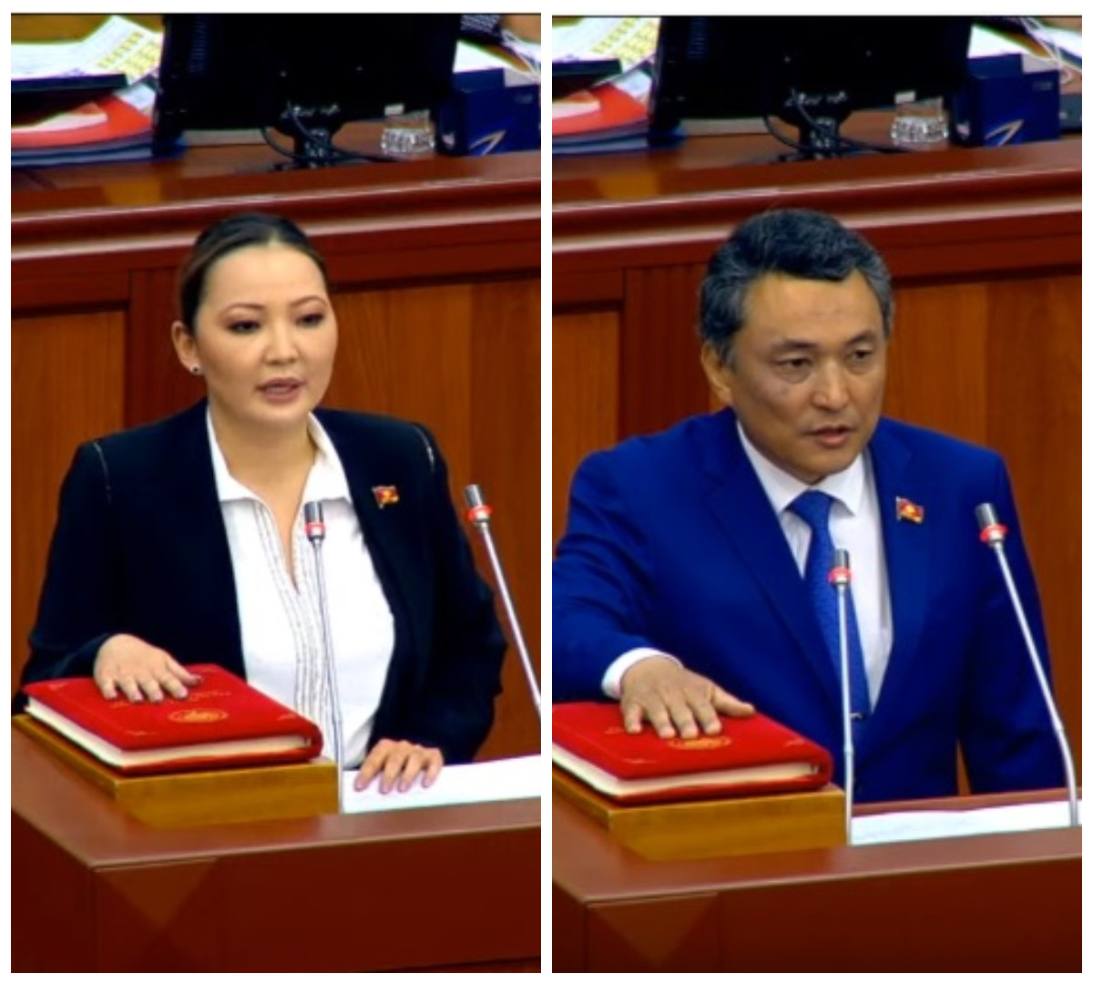 В Жогорку Кенеше новые депутаты Айгерим Бешимбаева и Самат Ибраев принесли присягу