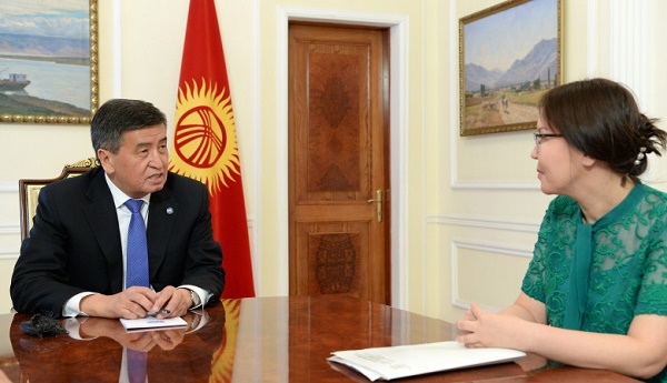 Президент Кыргызской Республики Сооронбай Жээнбеков сегодня, 24 июля, принял ответственного секретаря Национальной комиссии Кыргызской Республики по делам ЮНЕСКО Сабиру Солтонгельдиеву.