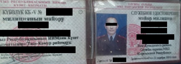 При осуществлении дальнейшей работы на территории Джалал-Абадской области сотрудники СВР МВД КР задержали начальника отделения охраны города Таш-Кумыра Службы охраны МВД КР Н. С. и заместителя командира взвода С.Т,.